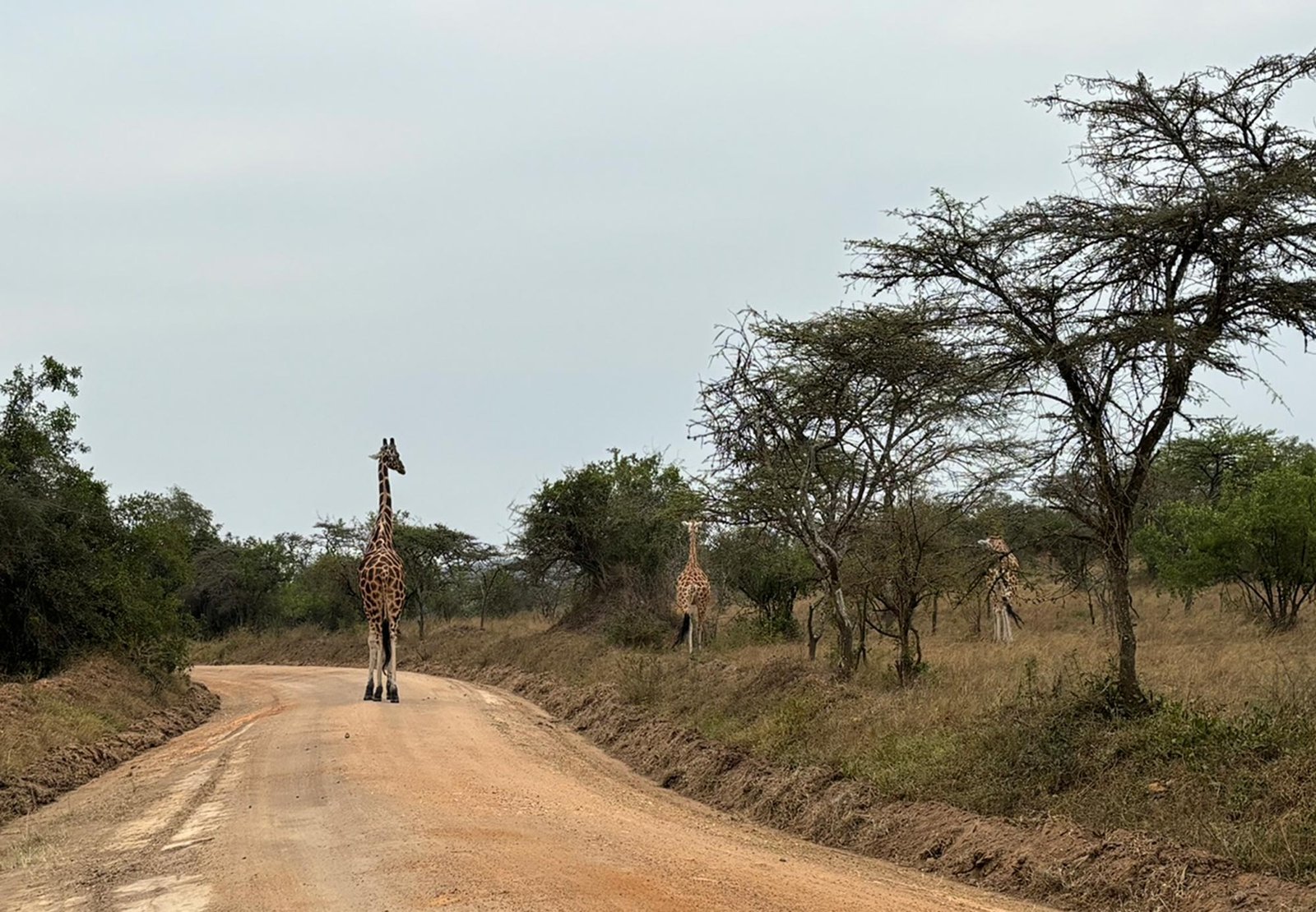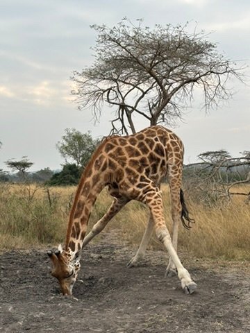 Our guide shared fascinating facts: these are Rothschild’s giraffes, a vulnerable subspecies, and more than 100 now live in the park thanks to reintroduction efforts that began in 2015. They were brought here from Murchison Falls National Park, and they’re thriving. The darker the patches, the more dominant the male, which have three horns. The tufts on young giraffes’ horns make it easier to tell their age. And those acacia trees they love to eat? Spiky enough to be used as toothpicks, sewing needles—or for tattoo-style skin scarification by local tribes.