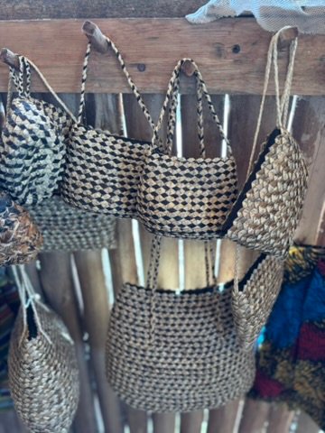 While lunch steamed on the open fire, we were taken to the local craft shop, where Anna’s son explained their incredible handiwork. Everything was made from nearby plants—papyrus, grasses, dyed fibres, and even recycled magazine pages, tightly rolled and varnished into beads.