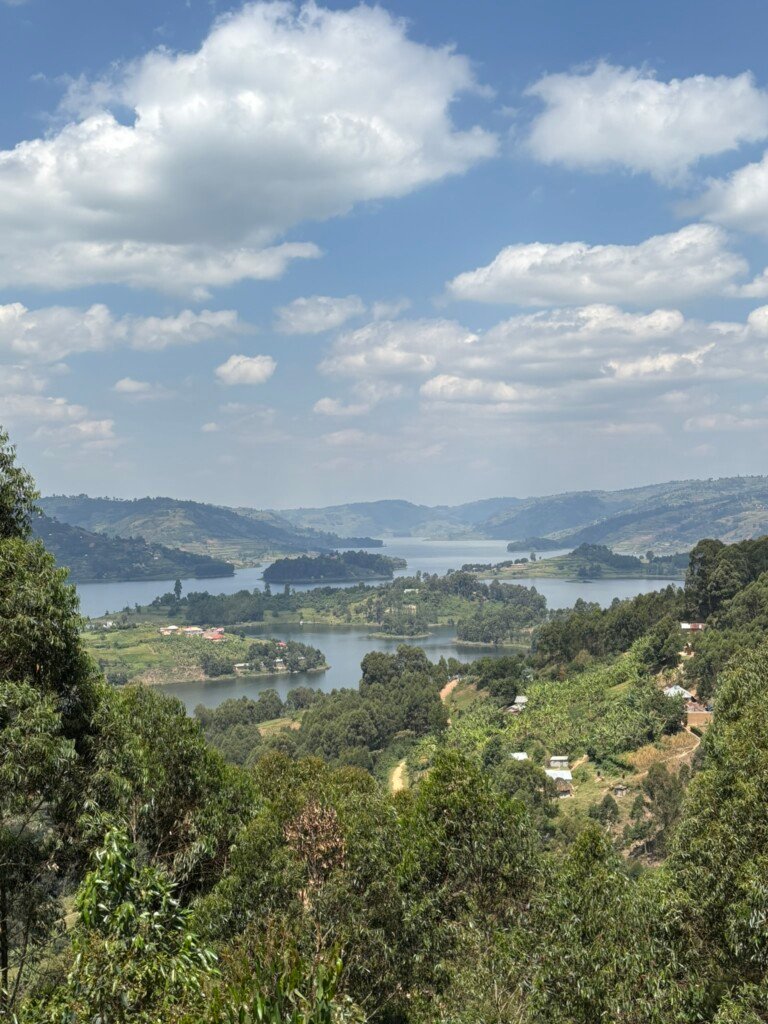 I woke up to one of the most breathtaking views I’ve ever seen—mist dancing over Lake Bunyonyi, sunlight beginning to filter through, and the islands still cloaked in early morning calm. It was the kind of view that makes you stop and whisper a quiet “thank you.”