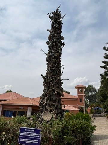 The Tree of Life, carved from a single towering trunk, stood tall outside the museum—impossible to miss, both in size and meaning. Its surface was alive with figures: women pounding grain, elders in council, children at play, cattle herders, drummers. Every detail was intentional. Each carving told a story—of daily life, of ritual, of myth, of community. It wasn’t just a sculpture; it was a visual archive of Uganda’s soul. The guide explained how it symbolised unity across the Great Lakes region, with its branches stretching across borders and its roots grounded in shared traditions. Like the baobab, it represented strength, sustenance, and connection—reminding us that culture isn’t frozen in time, it grows and adapts, always rooted, always alive.