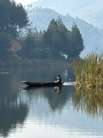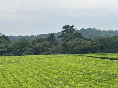 We left Bwindi early, driving north through swirling mountain mist and breathtaking landscapes that changed with every hour. From the cool, forested hills of gorilla country, we journeyed through lush banana groves, rolling tea plantations, and patchworks of coffee fields and subsistence farms. We passed red-earth brick kilns, children waving from village paths, and women carrying water or harvests along the roadside—watching Uganda unfold in shades of green, gold, and everyday life.
