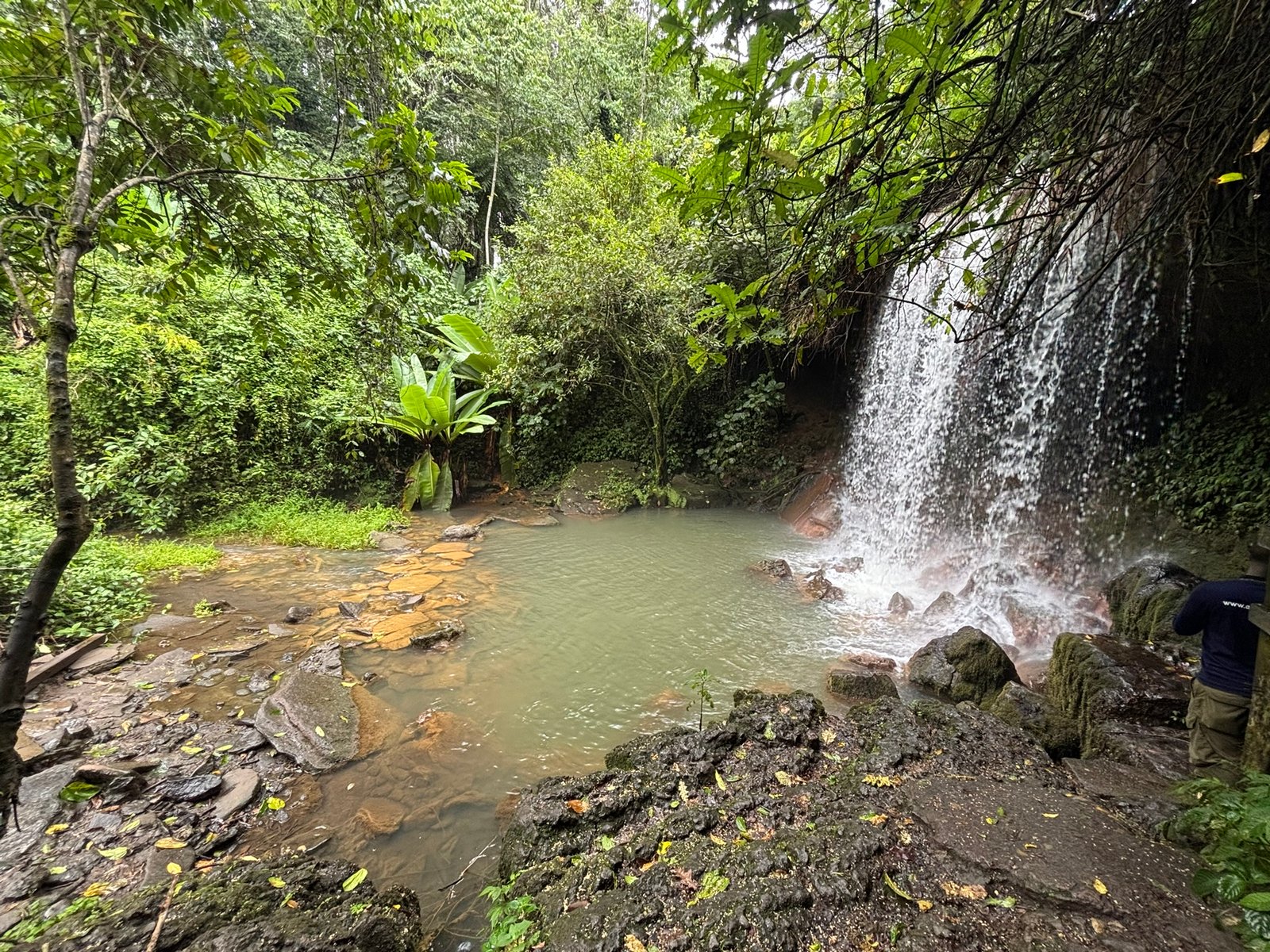 Just past the cave, we continued walking down a slope—and suddenly, the sound of rushing water filled the air.